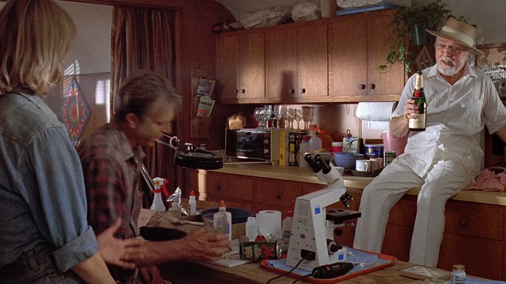 Sam Neill as Grant, Laura Dern as Ellie, Jeff Goldblum as Malcolm, Richard Attenborough as Hammond, Bob Peck as Muldoon, Martin Ferrero as Gennaro, BD Wong as Wu, Samuel L. Jackson as Arnold, Wayne Knight as Nedry, Joseph Mazzello as Tim, Ariana Richards as Lex, Gerald R. Molen as Harding, Miguel Sandoval as Rostagno, Cameron Thor as Dodgson, Christopher John Fields as Volunteer #1, Whit Hertford as Volunteer Boy, Dean Cundey as Mate, Jophery C. Brown as Worker in Raptor Pen, Tom Mishler as Helicopter Pilot, Greg Burson as 'Mr. D.N.A.' Voice (voice), Adrian Escober as Worker at Amber Mine, Richard Kiley as Jurassic Park Tour Voice (voice), Brad M. Bucklin as Lab Technician (uncredited), Laura Burnett as Archeologist (uncredited), Michael Lantieri as Customer at San Jose restaurant (uncredited), Gary Rodriguez as Miner - Dug Out Mosquito (uncredited), Lata Ryan as Control Room technician (uncredited), Brian Smrz as Driver of Grant, Sattler & Malcolm's Jeep (uncredited), Rip Lee Walker as Raptor #1 (uncredited), Robert 'Bobby Z' Zajonc as InGen Helicopter Pilot (uncredited)